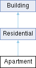 The Apartment class inherits from Residential and includes attributes specific to apartments, such as the number of floors.