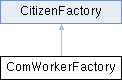 The ComWorkerFactory class inherits from CitizenFactory and implements the methods to create CommercialWorker instances.