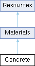 The Concrete class inherits from the Materials class and implements the singleton design pattern to ensure that only one instance of concrete exists within the resource management system. It provides methods to obtain and refine concrete.