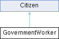 The GovernmentWorker class inherits from Citizen and represents a worker in the government sector.