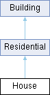 The House class inherits from Residential and includes attributes specific to houses, such as kitchen size.