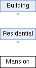 The Mansion class inherits from Residential and includes attributes specific to mansions, such as a water feature.
