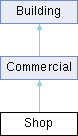 The Shop class inherits from Commercial and includes attributes specific to shops, such as the number of storage rooms.